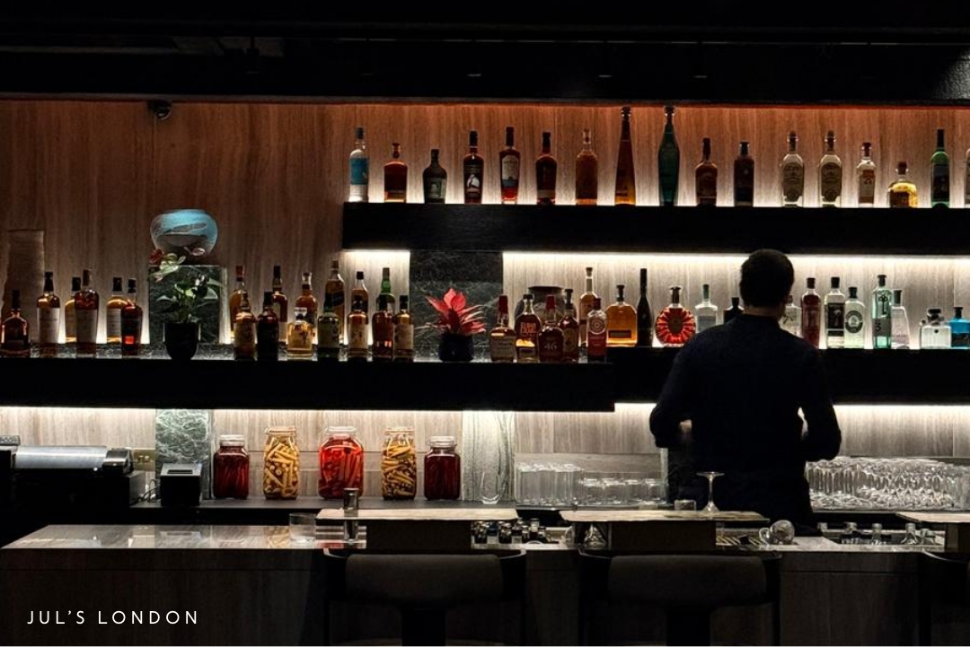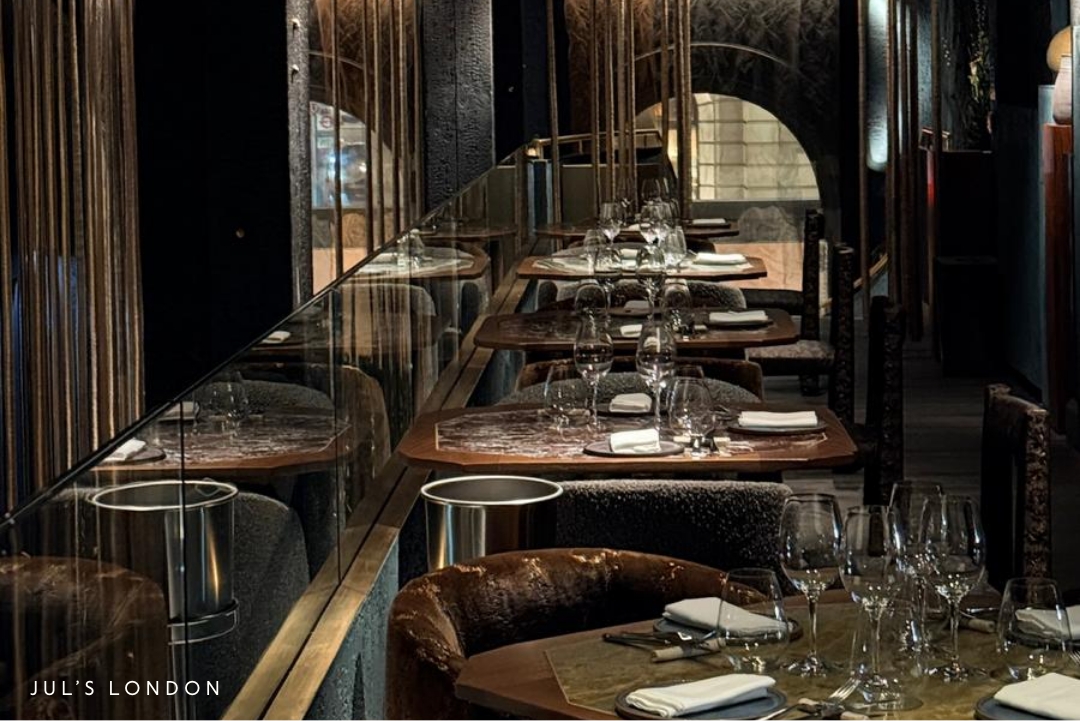 Then there’s Jul’s, fresh from Ibiza and already establishing itself as one of the city’s most high-energy openings. Far from intimate, the space is expansive and immersive, designed for late-night dining that leans into scale and spectacle. With its underground bar, in-house cocktail lab, and a soundtrack rooted in Balearic energy, Jul’s delivers a full-sensory experience. When I visited, the eclectic mix of flavours, music, and atmosphere made it easy to forget the city outside–it felt closer to the beach than central London.